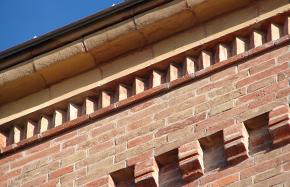 - Sanierung des Terrakottakranzgesimses (Fugensanierung, Verfestigung, Farblasur)
