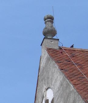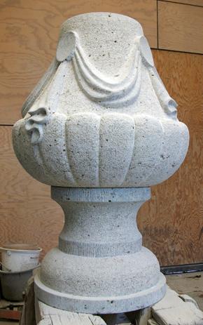 • Neuanfertigung der Giebelzier nach historischem Vorbild (Basis, Vase)